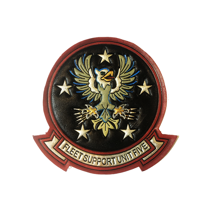 Embossed leather patch, Fleet Support Unit 5, about 4.5"