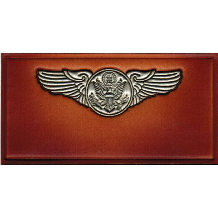 Leather Name tag. The Embossed leather nametag is a 2" x 4" and the name tag is available in black, brown, and natural. Text colors and different font size makes the Military embossed name tag a pride to wear. Our quick turnaround time (1-4 days) is added benefit. Bulk Squadron orders and and custom logo is our specially. The embossed leather name tag especially known by Aviators, and pilots. Pilot emboss leather name tag.